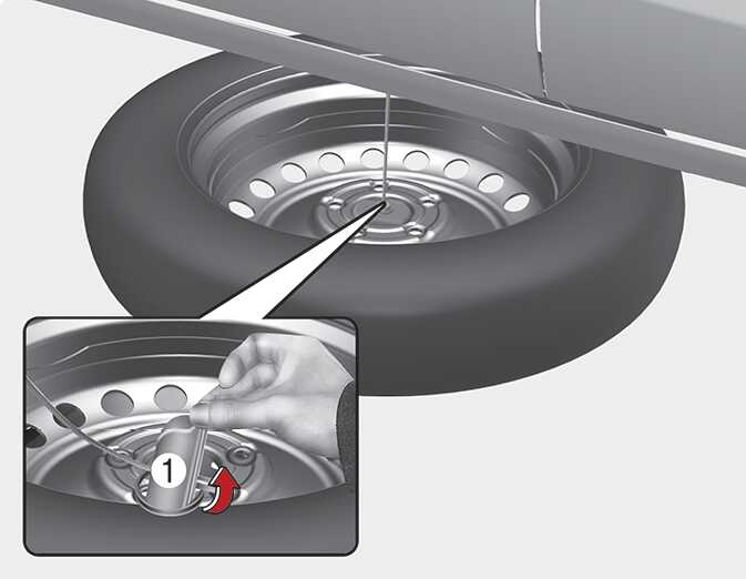 Turn the wrench counterclockwise until the spare tire reaches the ground.