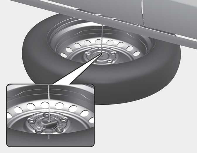 After the spare tire reaches the ground, continue to turn the wrench counterclockwise, and draw the spare tire outside. Never rotate the wrench excessively, otherwise the spare tire carrier may be damaged.