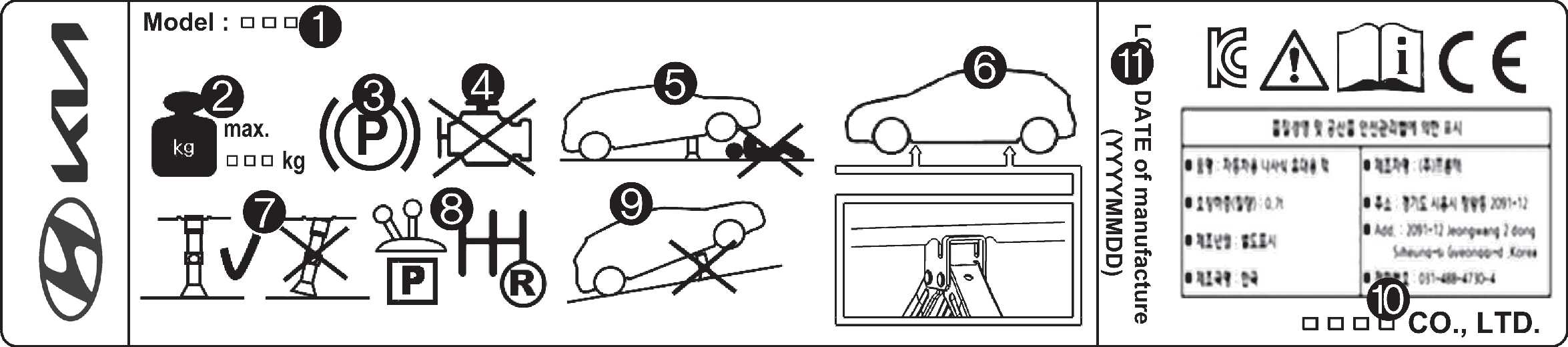 The actual Jack label in the vehicle may differ from the illustration. For more detailed specifications, refer to the label attached to the jack.