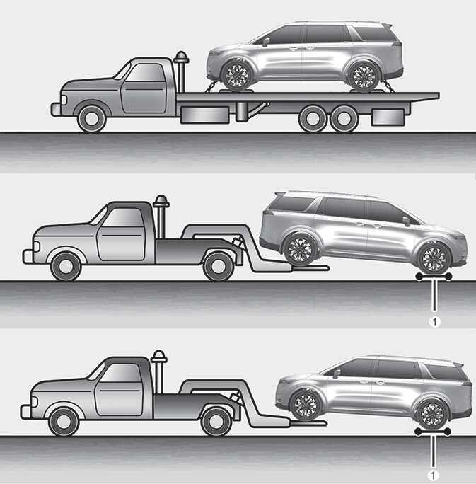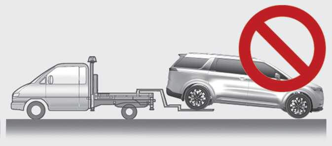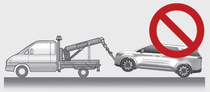 If you tow the vehicle while the front wheels are touching the ground, the vehicle motor may generate electricity and the motor components may be damaged or a fire may occur.