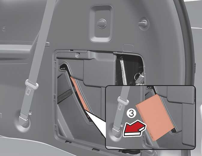 Open luggage and remove the storage cover(1) on the right side.
