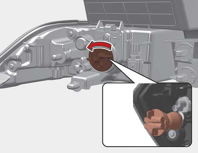 Remove the bulb from the socket by pressing it in and rotating it counterclockwise until the tabs on the bulb align with the slots in the socket.