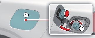 추운 날씨에 커버 주변이 얼어서 연료 주입구 커버(1)가 열리지 않으면, 커버 주위를 가볍게 두드리거나 누르십시오 .