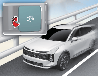 주차 브레이크를 급하게 조작하면 뒷바퀴만 제동이 되어 차가 옆으로 돌아갈 우려가 있으므로 주차 브레이크를 천천히 조작하십시오.