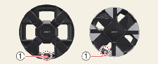 휠 커버의 엠블럼 위치와 휠의 공기 주입구(1) 위치를 다음 그림과 같이 맞춘 후, 휠 커버를 장착하십시오.
