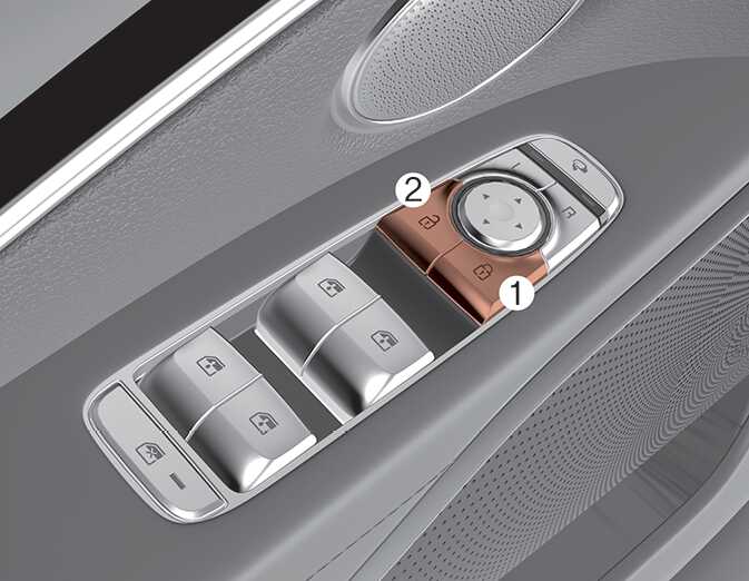 운전석 또는 동승석에 있는 잠금 해제 버튼(2)을 누르면 모든 도어가 잠금 해제됩니다.