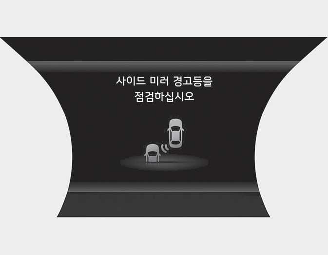 사이드 미러(실외 미러) 경고등에 이상이 있으면 계기판에 경고문이 일정시간 표시되며 통합 경고등(