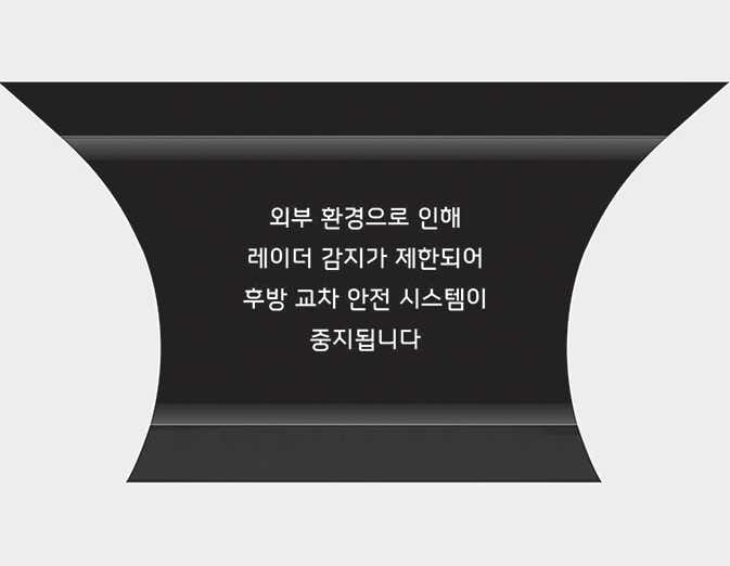 후측방 레이더 또는 뒷범퍼 주변에 눈, 비 등의 이물질이 묻거나, 트레일러, 캐리어 및 기타 장비를 거치하면 인식 성능이 저하되어 안전 하차 경고가 일시적으로 제한되거나 작동하지 않을 수 있습니다.