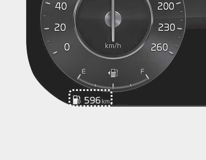 현재 연료 탱크에 남아있는 연료로 주행 가능한 거리를 표시합니다.