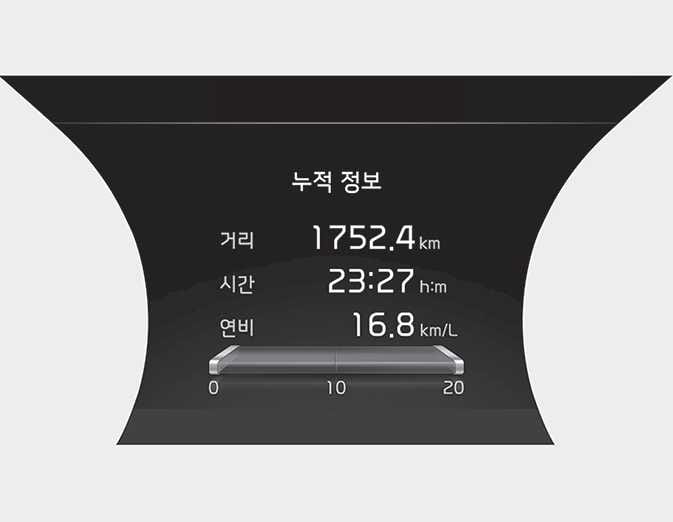 주행 연비는 시동 ON 이후 약 300 m 이상 주행 조건을 만족해야 계산을 시작합니다.