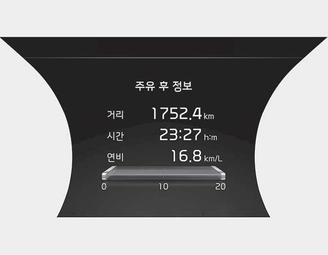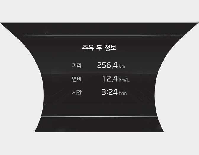 주유 후 연비는 시동 ON 이후 약 300 m 이상 주행 조건을 만족해야 계산을 시작합니다.