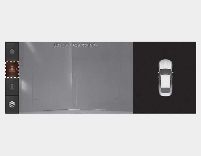 )을 터치하면 차량을 위에서 내려다 보는 영상이 화면에 표시되고, 주차할 때 후방 차량과의 거리를 보여주는 기능입니다.