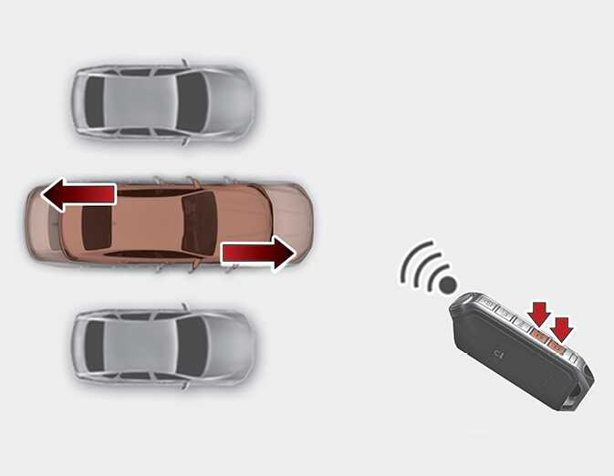 운전자가 원격 전/후진 기능을 사용하고자 하는 공간 앞에 차량을 정렬하고 「 P 」 (주차)단으로 변속하십시오.