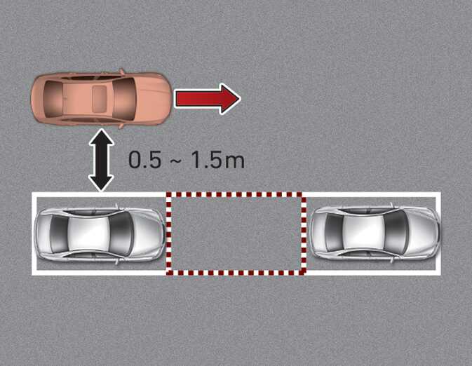 운전자는 차량 주행 시 주차된 차량과 0.5m 미만으로 접근하거나, 1.5m 이상 떨어지면 원격 스마트 주차 보조는 주차 공간 탐색을 정상적으로 못 할 수 있습니다.