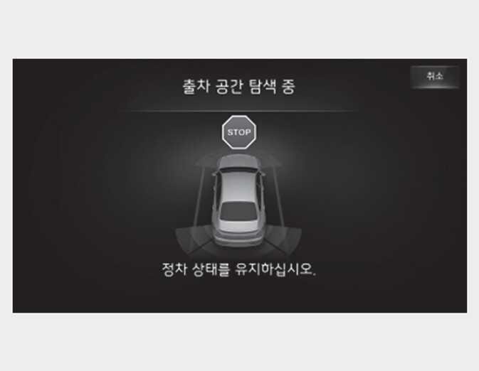 스마트 출차 기능을 사용하기 위해 운전자는 인포테인먼트 시스템 화면에서 「동의」를 선택하여 인포테인먼트 시스템이 정상적으로 작동하고 있어야 합니다.