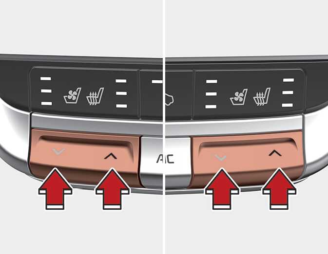 온도 독립 조절 기능이 작동하는 경우 운전석 및 동승석의 온도조절 버튼을 이용하여 온도 조절을 하면 해당 좌석의 온도만 조절됩니다.