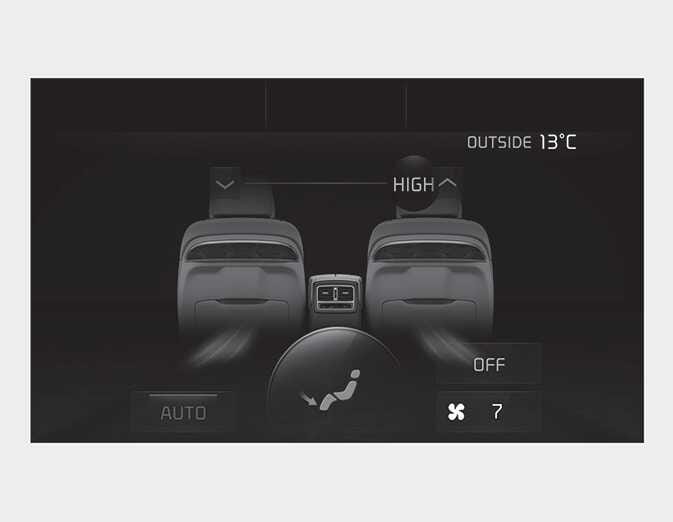 뒷좌석 공조 조절 ORJ041589 뒷좌석의 온도, 풍량, 바람 방향을 제어할 수 있습니다. 공조 설정 화면에서 [후석 공조 조절]을 누르십시오. 온도, 풍량, 바람 방향을 설정하십시오.