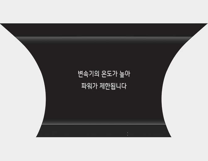 변속기 온도가 높아 파워가 제한됩니다. ORJ041639 자동변속기 오일 온도가 높으면 표시창에 경고문을 표시합니다. 정속 주행을 하거나 시동을 걸어 놓고 안전한 곳에 정차하십시오. 온도가 내려가면 경고문을 표시하지 않습니다.