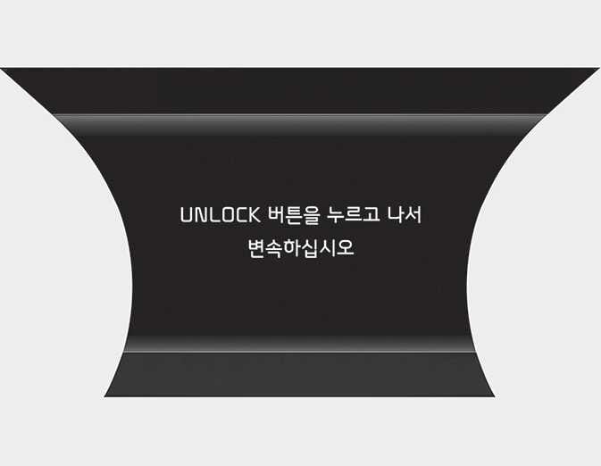 「UNLOCK」 버튼을 누르지 않았을 때 표시창에 경고문이 표시됩니다.「UNLOCK」 버튼을 누르고 변속하십시오 .