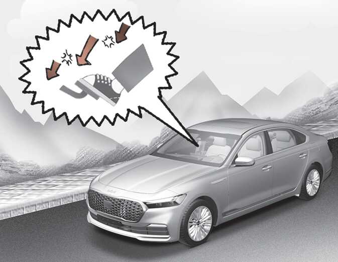 브레이크를 밟을 때는 여러 번에 걸쳐 밟으십시오.