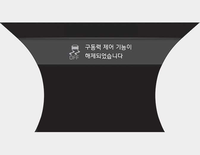 이때, 구동력 제어 기능이 해제되나 안전을 위한 브레이크 제어 기능은 작동합니다.LCD 표시창에 경고문이 표시됩니다.