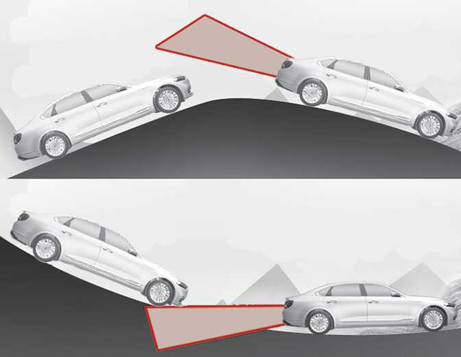 오르막길이나 내리막길에서는 옆 차로에 있는 차량을 인식하지 못해 후측방 충돌방지 보조가 정상적으로 작동하지 않을 수 있습니다.