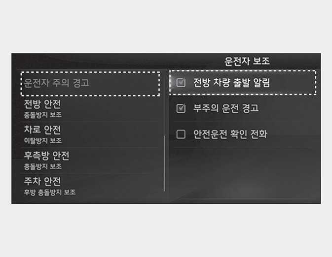 전방 차량 출발 알림: 정차 중에 전방 차량이 출발했을 때 알려줍니다.