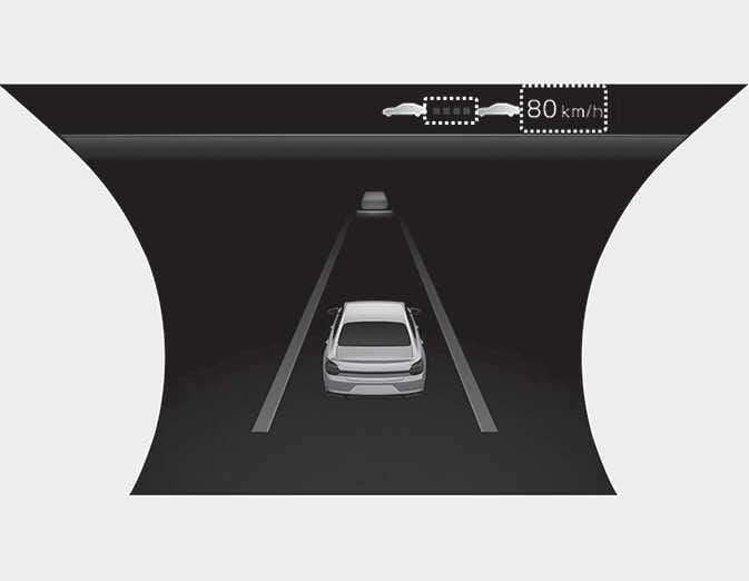 가속 페달로 일시적으로 가속할 때는 전방에 차량이 있어도 속도와 차간거리가 자동으로 조절되지 않으므로 주의하십시오.