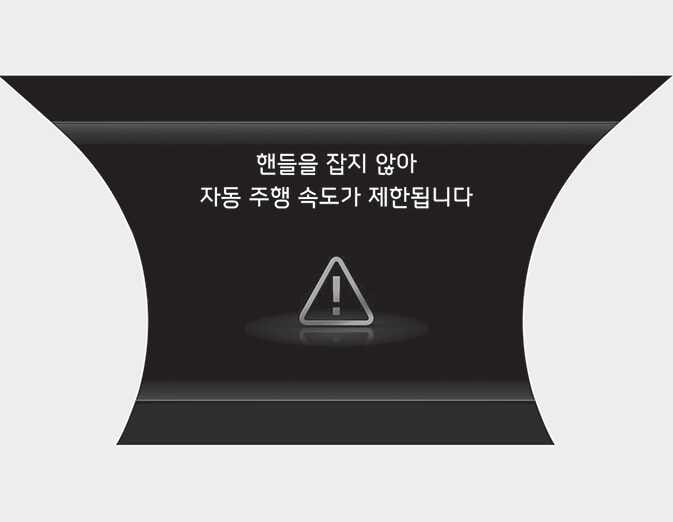 핸즈오프에 의해 고속도로 주행 보조가 꺼지면 주행속도가 제한됩니다. 주행속도 제한 기능이 작동하는 중에는 지속해서 경고문이 표시되고, 경고음이 울립니다.