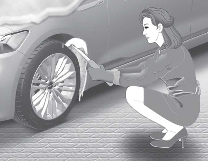 차의 밑부분 둘레에 있는 얼음 덩어리를 부품에 손상을 주지 않도록 주의하면서 제거하십시오.