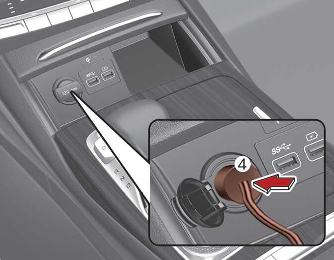컴프레서의 전원이 꺼져있는 상태에서 차량 파워 아웃렛 연결 커넥터 및 케이블(4)을 차량의 파워 아웃렛에 연결하십시오.