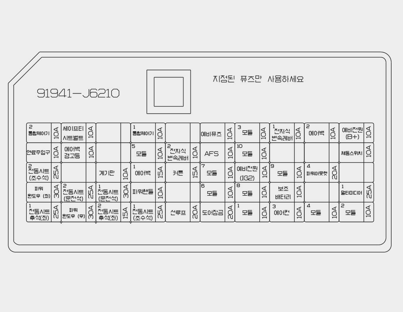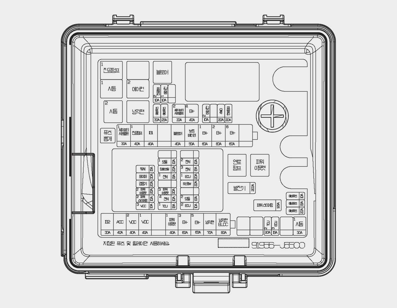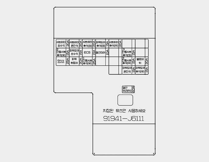 사양에 따라 퓨즈/릴레이 라벨이 실제 장착된 라벨과 상이할 수 있으니 박스 커버 안쪽에 부착되어 있는 퓨즈/릴레이 라벨을 참고하십시오.