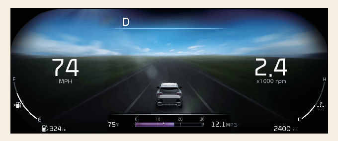 Type A is the basic theme of the full LCD type cluster and provides different graphic styles depending on drive mode.