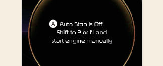 A: Auto Stop is Off. Shift to P or N and start engine manually