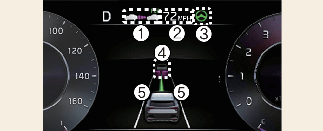 You can see the status of the Highway Driving Assist operation in the Driving Assist view on the cluster. Refer to More Details.