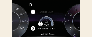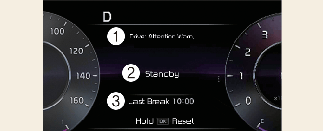 The warning message will appear on the cluster and an audible warning will sound to suggest that the driver take a break, when the driver's attention level is below 1.