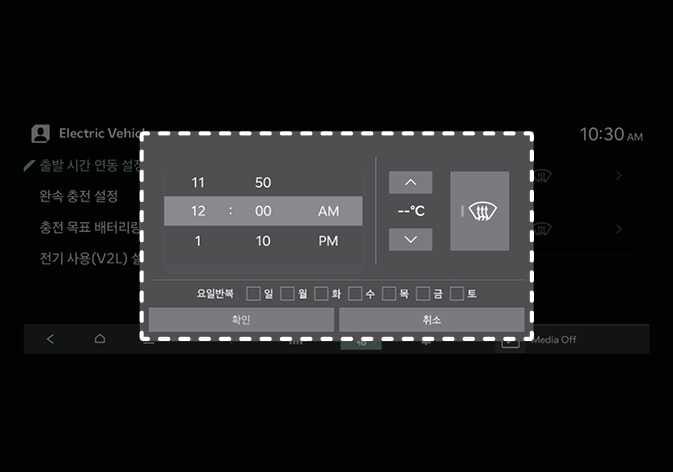 인포테인먼트 시스템 화면의 아이콘을 선택한 후 출발 시간 연동 설정을 선택하십시오. |
