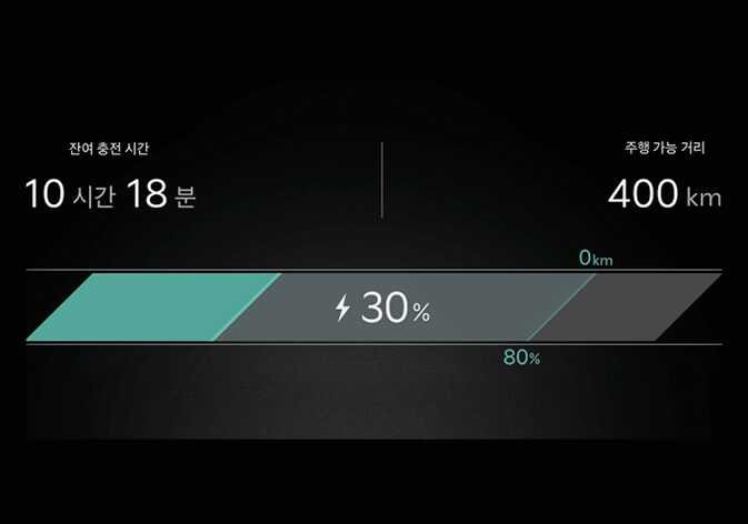 충전 예상 소요 시간은 구동용(고전압) 배터리 상태와 수명, 충전기의 사양, 주변 온도에 따라 달라질 수 있습니다.