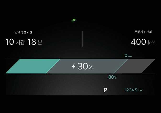 충전 중에 운전석 도어를 열 경우에도 클러스터에 충전 예상 소요 시간이 약 1분 동안 표시됩니다.