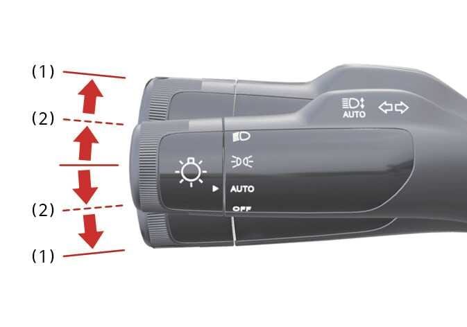 • 조명 스위치를 위(2) 또는 아래(2)로 움직이면 방향지시등이 작동하나 스위치를 놓으면 스위치가 원위치됩니다.