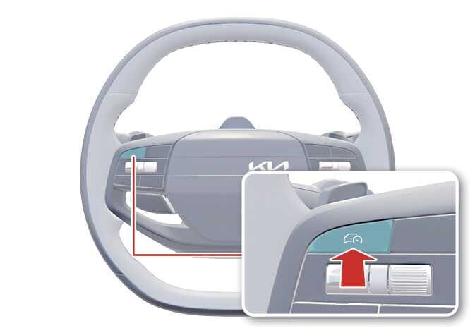 스마트 크루즈 컨트롤을 켜려면 주행 보조 버튼을 누르십시오. 현재 클러스터의 속도로 스마트 크루즈 컨트롤의 속도가 설정됩니다.