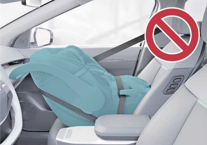 특히 에어백이 장착된 차량에서 동승석 탑승 시 아이를 안고 탑승하면 더욱 위험합니다.