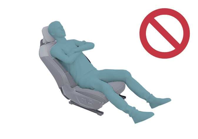 시트 등받이 각도를 지나치게 기울이면 충돌이나 급정차 시에 탑승자의 엉덩이가 안전벨트의 아랫부분으로 빠져나올 수 있습니다. 이럴 경우 안전벨트에 탑승자가 더 이상 고정되지 않고 안전벨트가 복부나 목을 조여 심각한 부상이나 사망을 초래할 수 있습니다. 그러므로 주행 중에는 항상 등받이를 바로 세우고 앉으십시오.