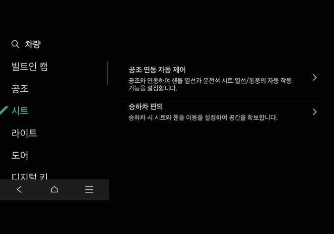 공조 연동 자동 제어: 히터 및 에어컨 시스템과 연동하여 스티어링 휠 열선 및 운전석 열선/통풍 시트를 자동으로 제어할 수 있습니다.