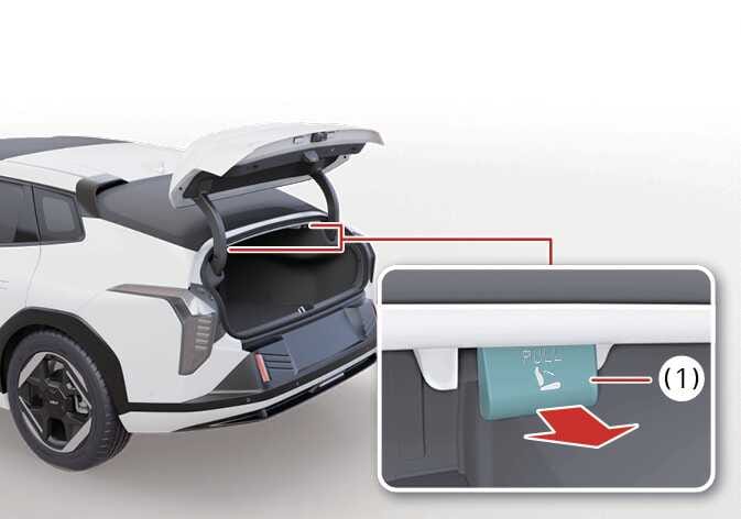 트렁크에 위치한 좌석 접이 레버(1)를 당겨 등받이를 앞으로 접으십시오.
