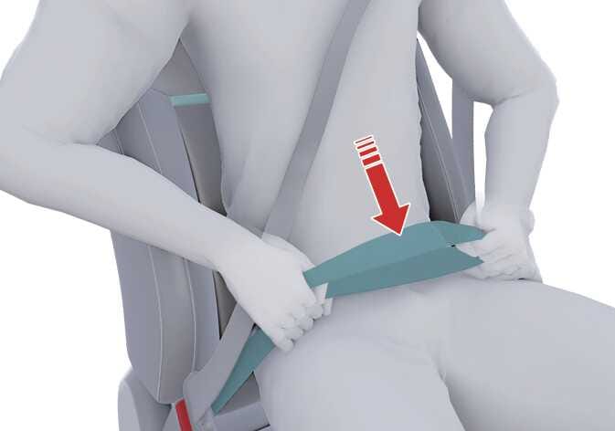 안전벨트의 골반띠 부분이 부드럽게 골반 부분을 지나도록 해야 합니다.