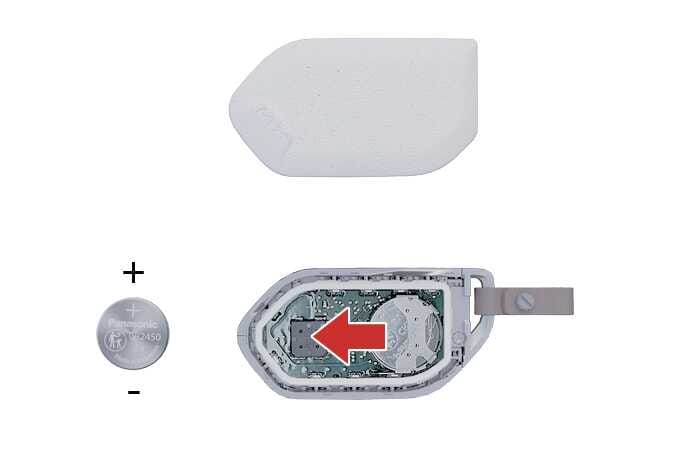 규격(CR2450 X 1개)에 맞는 건전지를 구입하여 교체하십시오. 단, 극성에 주의하여 조립하십시오. 극성에 맞지 않게 조립하면, 배터리가 방전되어 키가 작동하지 않습니다.