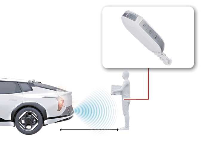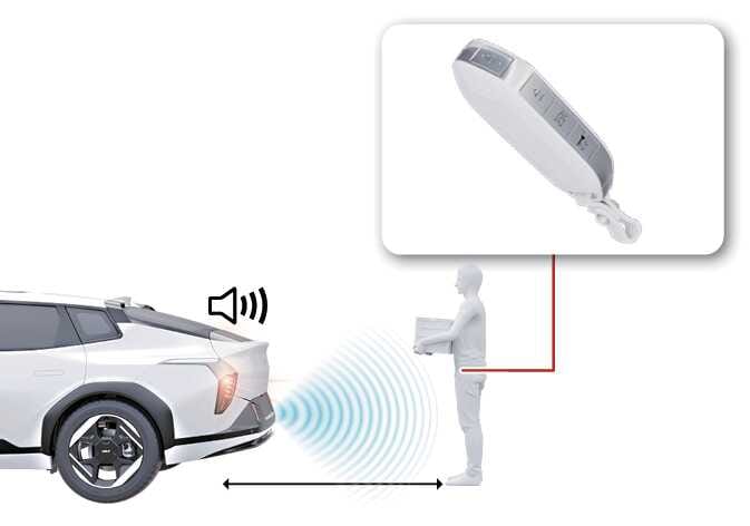 스마트키를 휴대하고 트렁크 후방 감지 영역 약 50~100 cm 이내 접근해 3초 이상 대기 시(감지 영역 진입 시 비상경고등 및 경고음 작동)