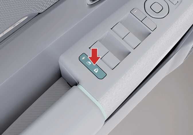 운전석 도어에 있는 유리창 열림/닫힘 잠금 버튼을 눌러 표시등이 켜지면 뒷좌석의 유리창 열림/닫힘 스위치 작동을 잠글 수 있습니다.