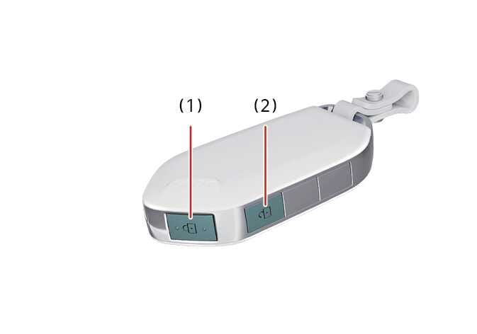 시동이 꺼진 상태에서 도어 잠금 버튼(1) 및 도어 잠금 해제 버튼(2)을 약 3초 이상 길게 누를 경우